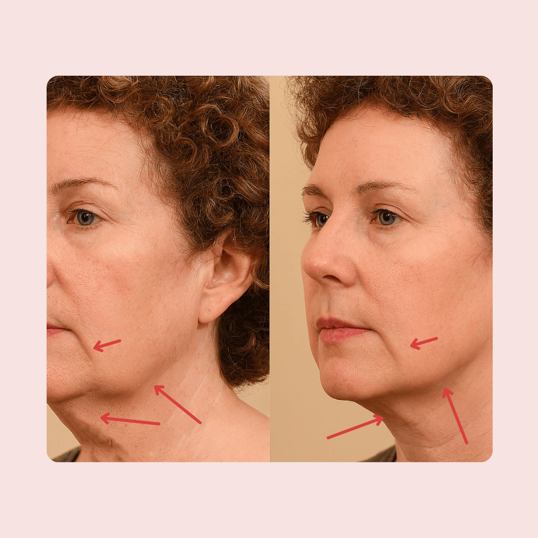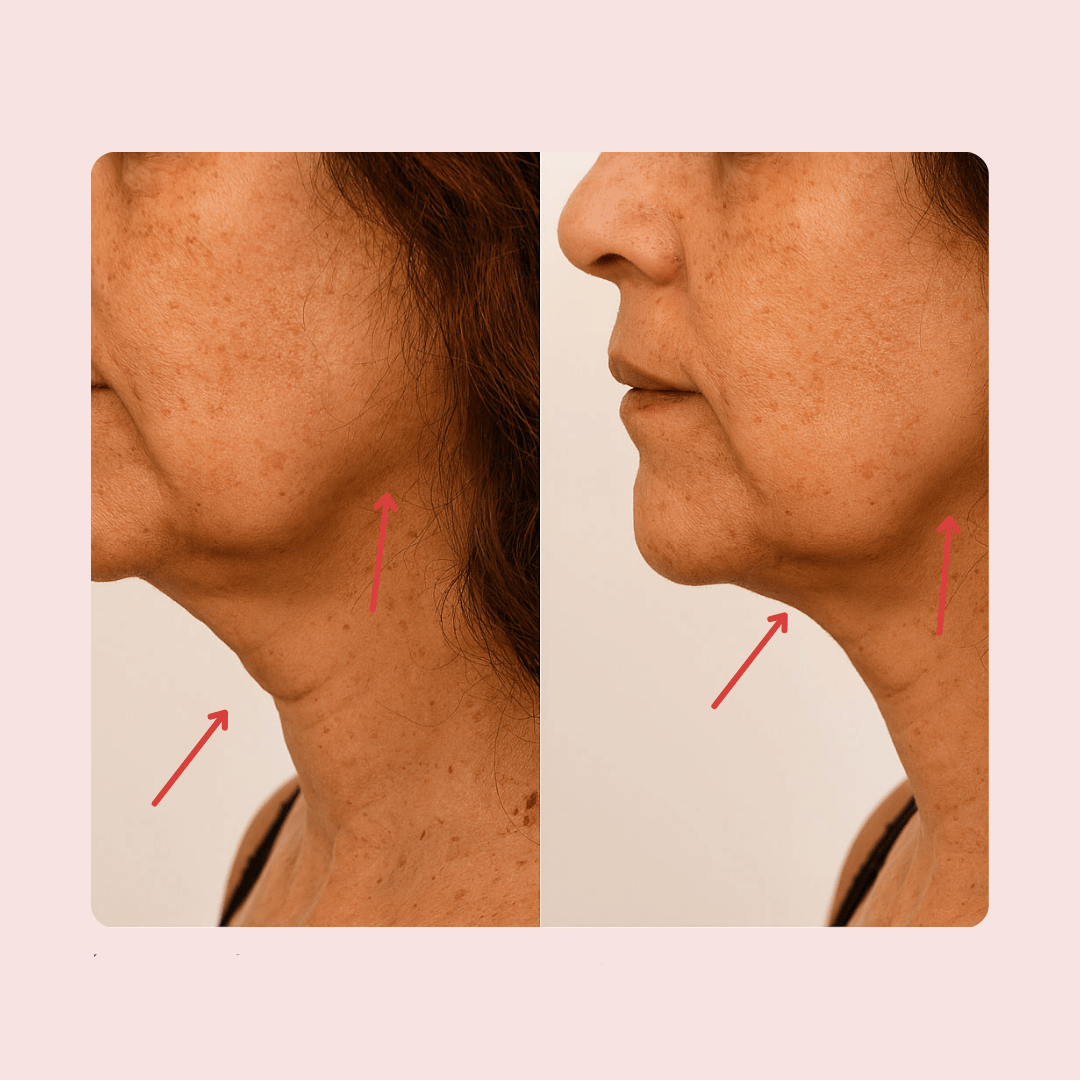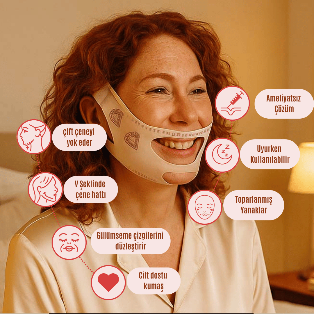 Düzenli kullanımda çene bölgesini toparlayarak çift çene görünümünü belirgin şekilde azaltmaya yardımcı olur. Daha sıkı ve daha ince bir yüz hattı sunarak V formunu destekler.