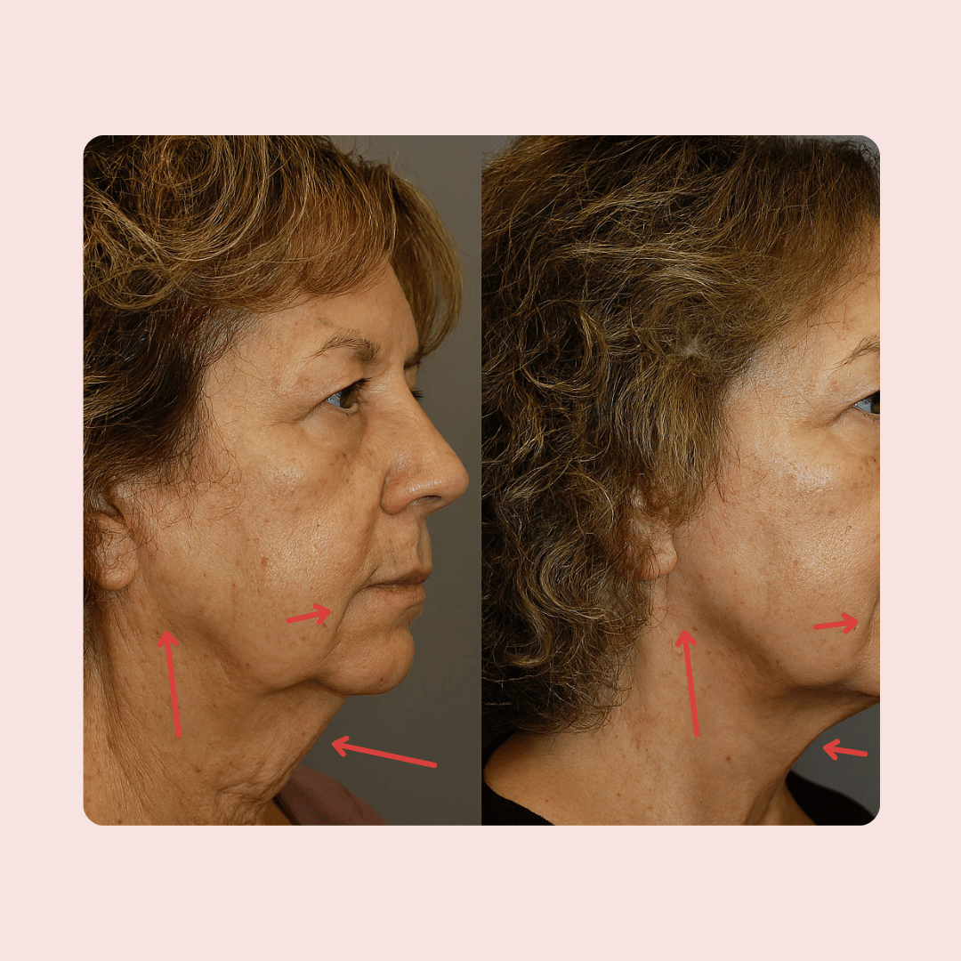 Kayışımız çeneniz boyunca hareket ederek net ve belirgin bir çizgi oluşturur. Bu kaldırma hareketi, doğal kemik yapınızı ortaya çıkarır ve fotoğraflarda ve gerçek hayatta harika görünen o gözde V şeklini oluşturur.